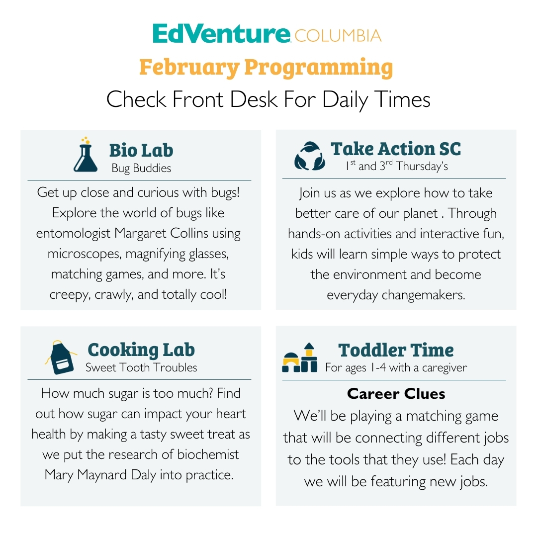 Join us Sunday, February 28 for Camp Preview Day! Parents can explore our exciting lineup of 2026 EdVenture Summer Camps, meet staff, and get all their questions answered — plus enjoy a special early bird registration discount on summer camp. Don’t miss it!