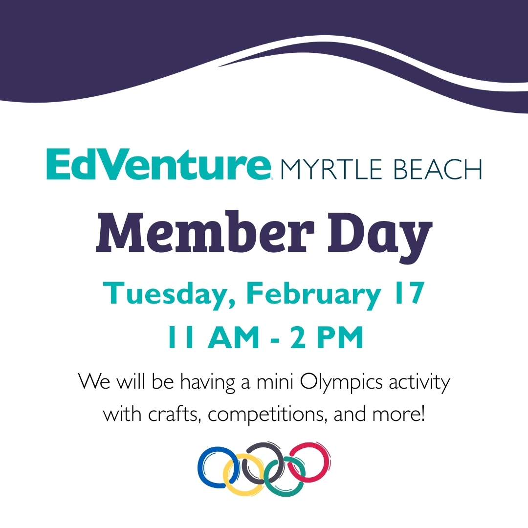 Myrtle Beach Location Join us Tuesday, February 17 from 11AM-2PM for Member Day! We will be having a mini Olympics activity with crafts, competitions, and more! Not a member? No